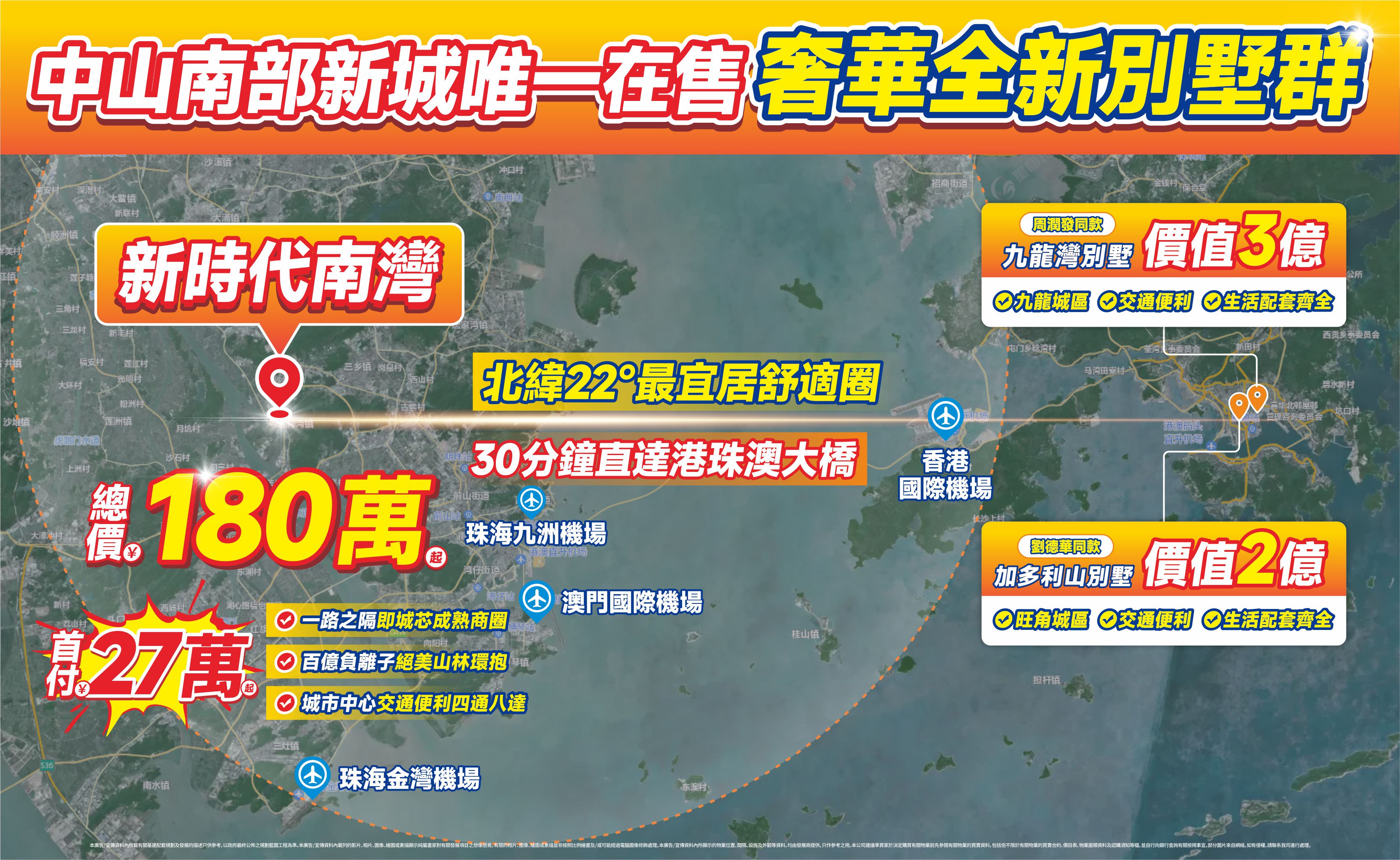 項目出發30分鐘可直達港珠澳大橋人工島,澳門國際機場、香港國際機場和珠海金灣機場三大機場環繞;30分鐘北上可達中山城區,30分鐘南下可達九州港、珠澳人工島;8分鐘車程即可上廣珠西綫;距離105國道僅5公里。
