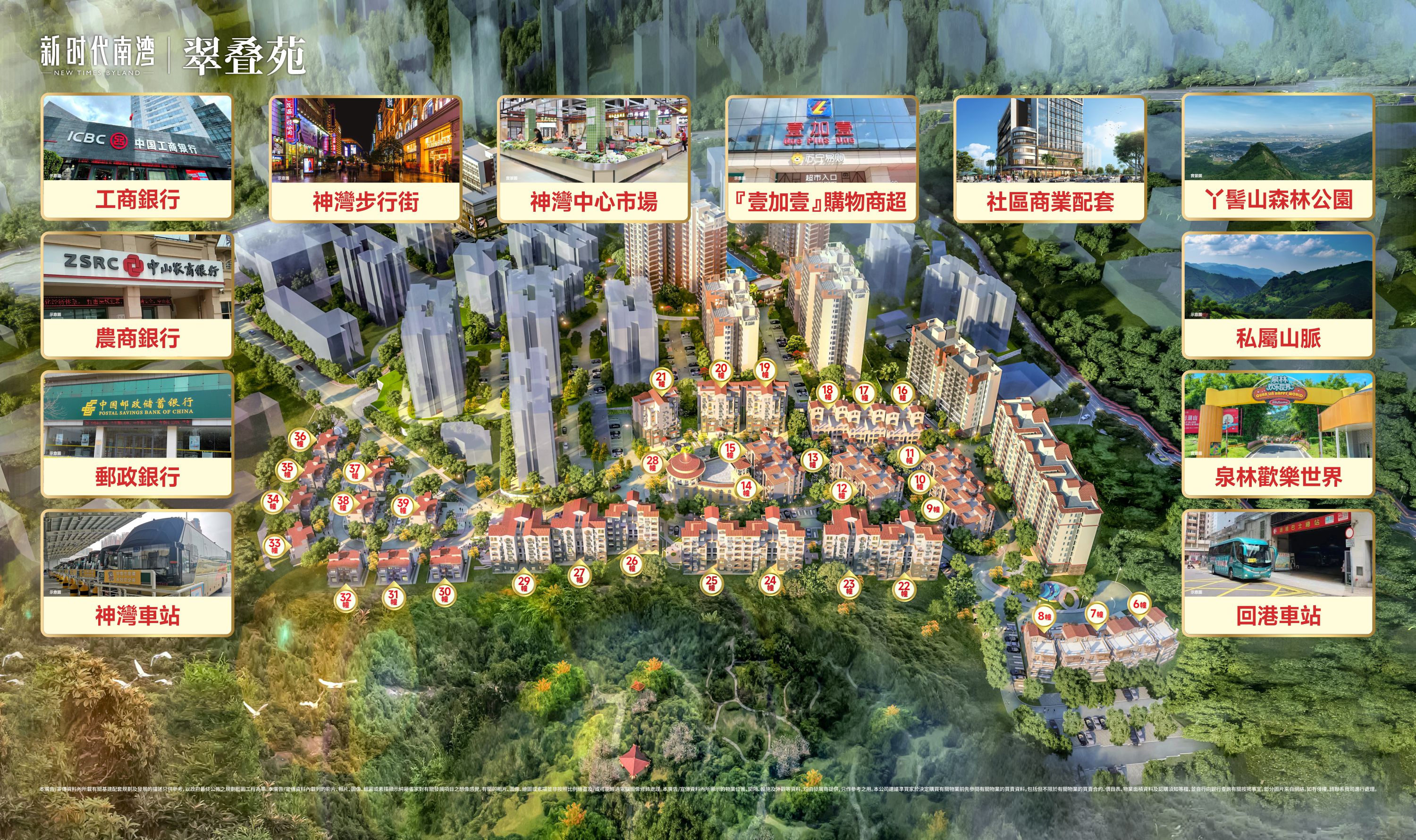 項目位於神灣大道,神灣繁華城市中心旁,周邊幼兒園、小學、市場、超市等配套應有盡有,可自由轉換繁華與靜謐。10分鐘可達珠海斗門,30分鐘可達中山主城區。項目作為片區少有的約200畝成熟大城,項目自有商業綜合體,滿足每一位業主衣食住行的需求。一路之隔即城芯成熟商圈,包括壹加壹大型商超、中心生鮮市場等